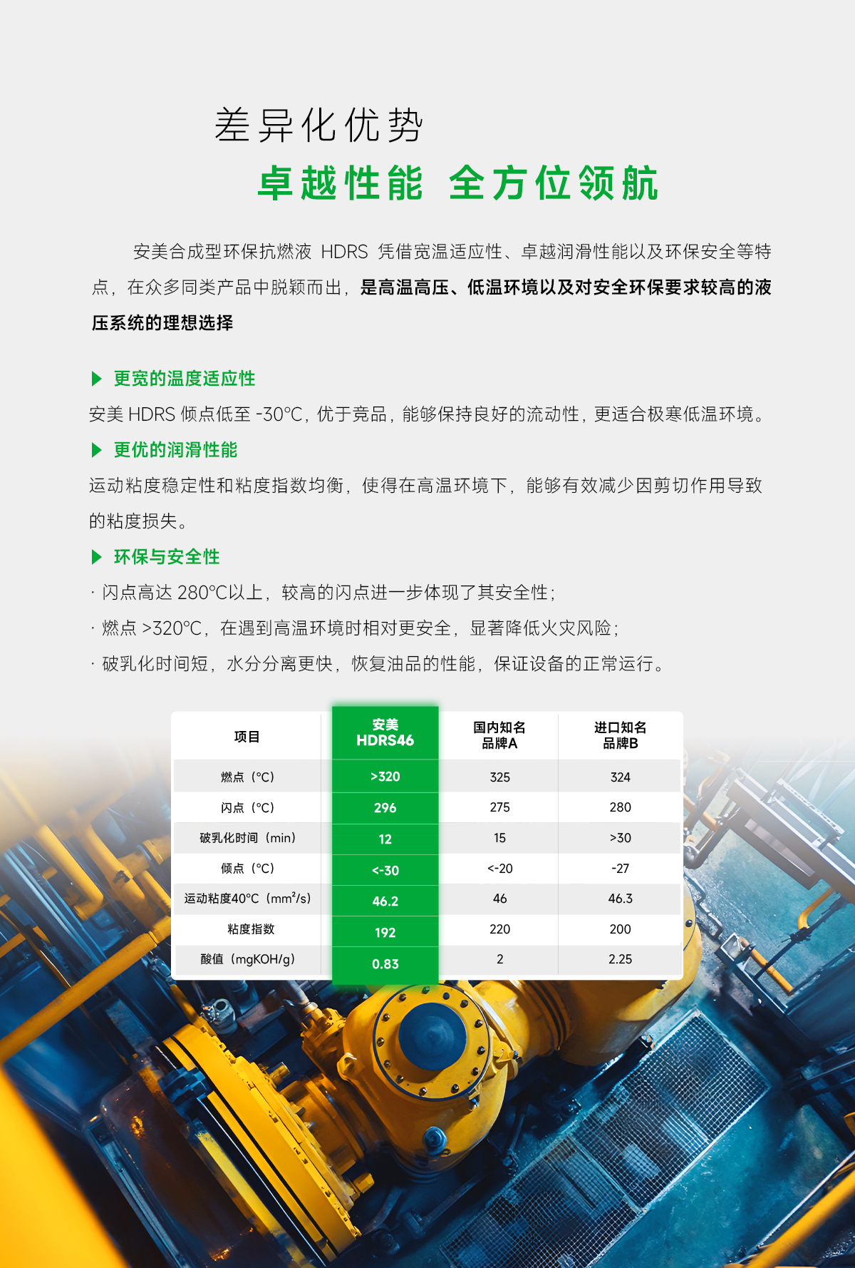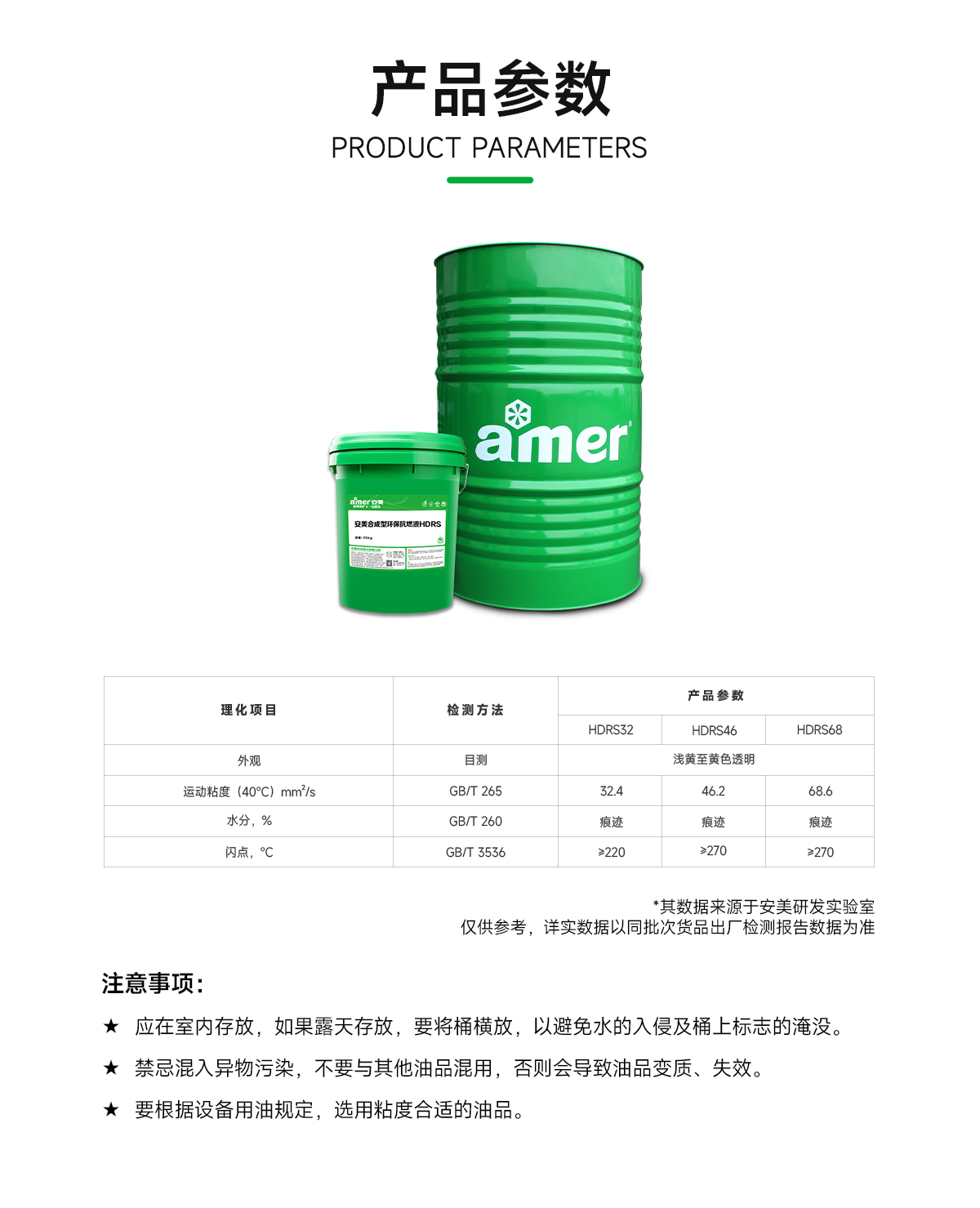 關(guān)于安美合成型環(huán)??谷家篐DRS的其它具體指標(biāo)參數(shù),請移步”安美商城”下載MSDS和TDS報告瀏覽,或直接液壓油生產(chǎn)廠家—安美集團(tuán)客服熱線400-7788-123/客服微信18576991625查詢索取。