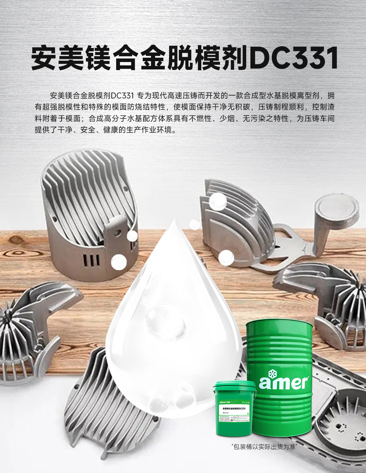 安美鎂合金脫模劑DC331是專為現(xiàn)代高速壓鑄而開發(fā)的一款合成型水基脫模離型劑,擁有超強(qiáng)脫模性和特殊的模面防燒結(jié)特性,使模面保持干凈無積碳,壓鑄制程順利,控制渣料附著于模面;合成高分子水基配方體系具有不燃性、少煙、無污染之特性,為壓鑄車間提供了干凈、安全、健康的生產(chǎn)作業(yè)環(huán)境。