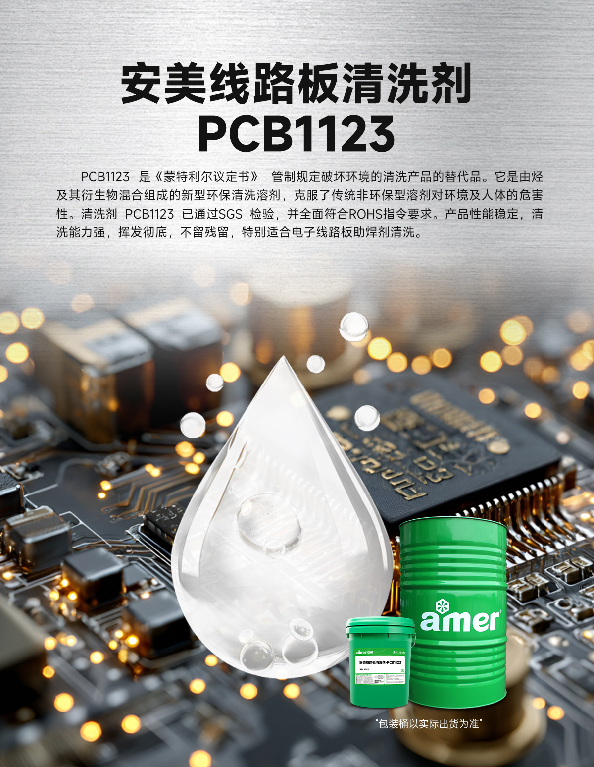 安美線路板專用碳?xì)淝逑磩㏄CB1123是《蒙特利爾議定書》 管制規(guī)定破壞環(huán)境的清洗產(chǎn)品的替代品。它是由烴及其衍生物混合組成的新型環(huán)保清洗溶劑,克服了傳統(tǒng)非環(huán)保型溶劑對環(huán)境及人體的危害性。清洗劑 PCB1123 已通過SGS 檢驗(yàn),并全面符合ROHS指令要求。產(chǎn)品性能穩(wěn)定,清洗能力強(qiáng),揮發(fā)徹底,不留殘留,特別適合電子線路板助焊劑清洗。