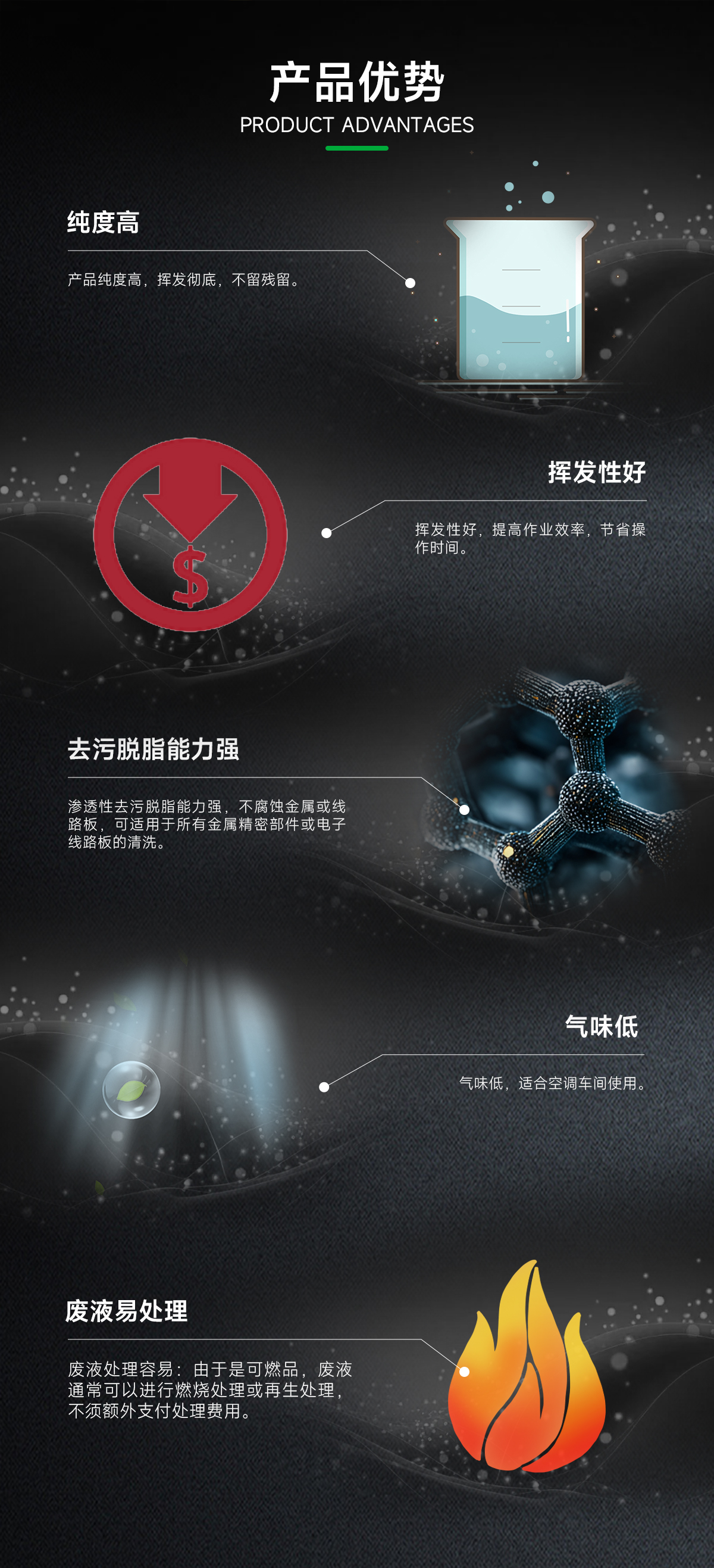 3、滲透性去污脫脂能力強(qiáng),不腐蝕金屬或線路板,可適用于所有金屬精密部件或電子線路板的清洗。